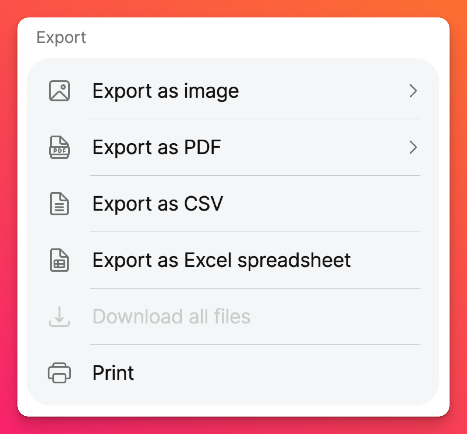 Export options