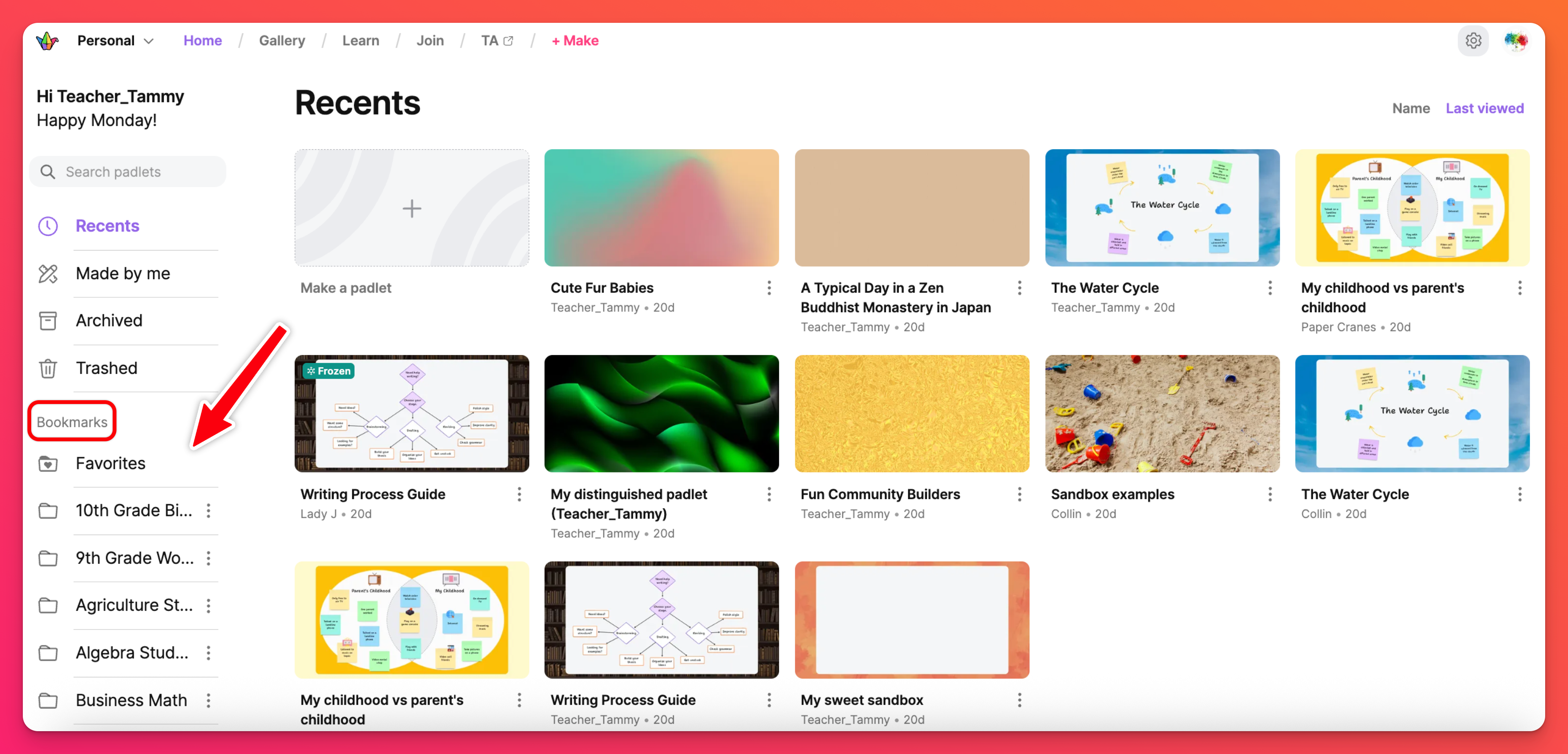 Organize any padlets you'd like to reuse next year using Bookmarks or a central wall.