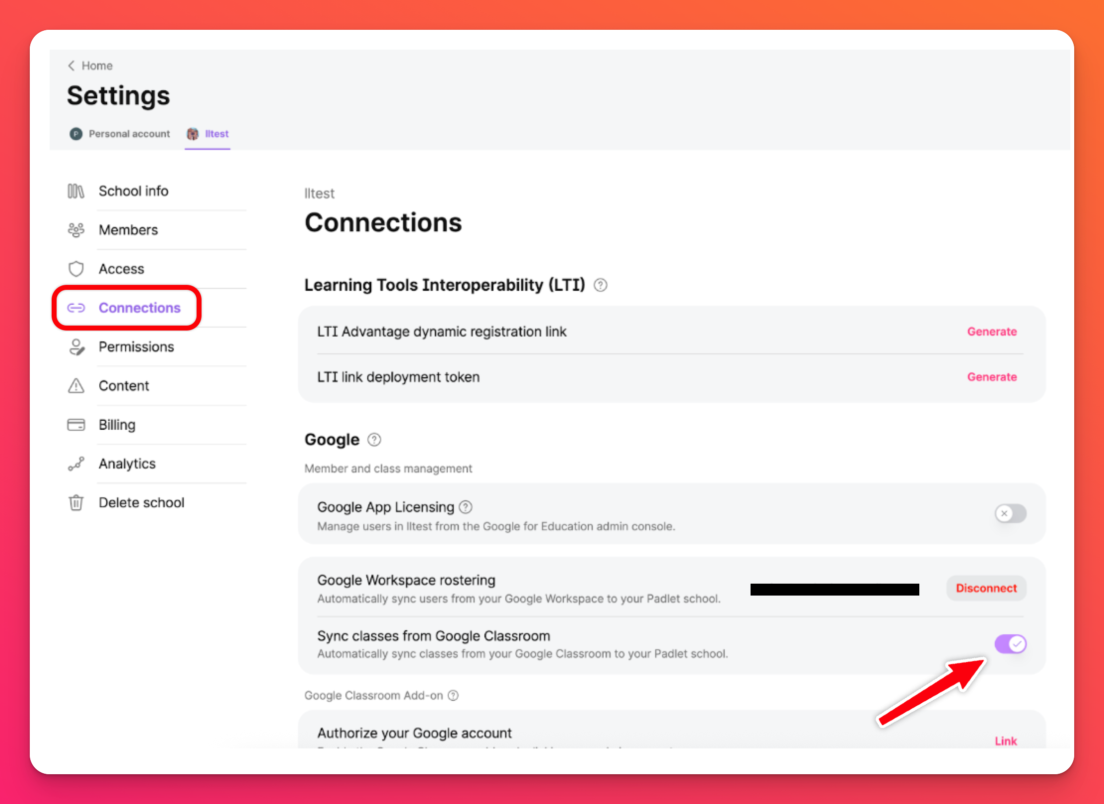- Next to 'Sync classes from Google Classroom,' toggle the button ON