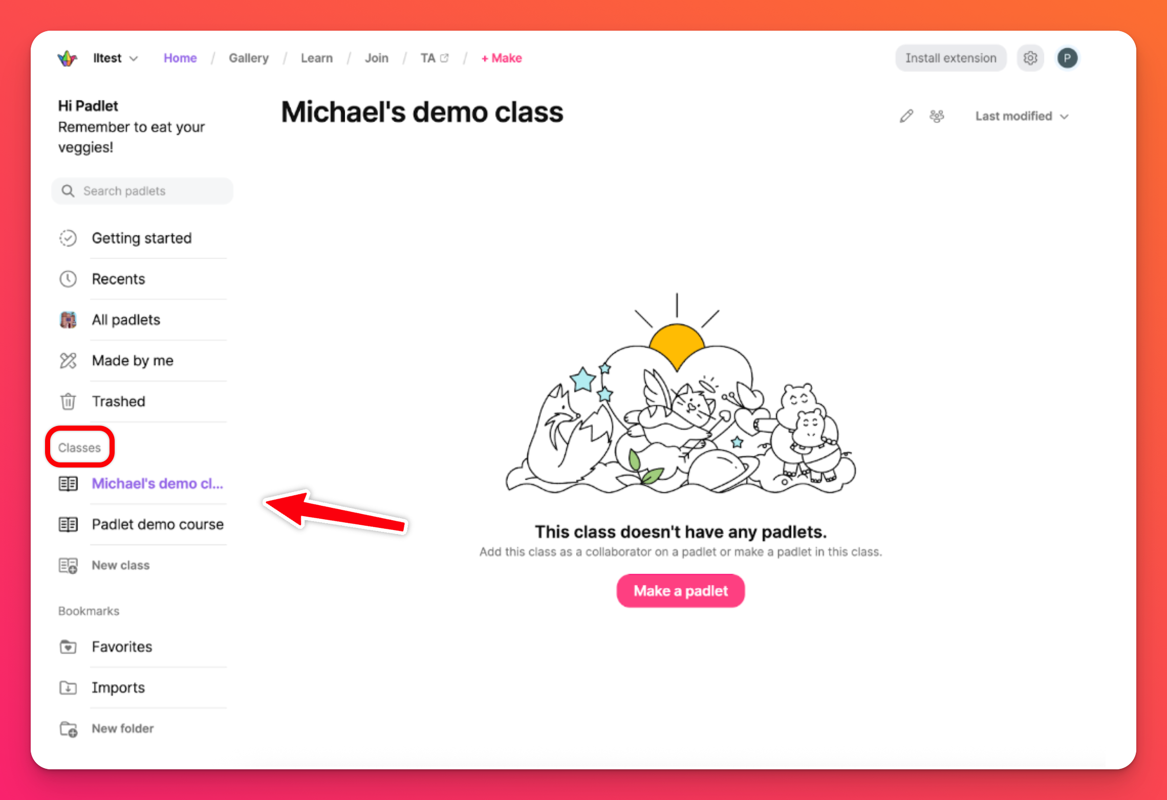 Within one minute, all classes and their enrolled users from Google Classroom should be rostered and appear in Padlet.