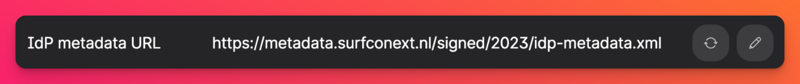 Pokud chcete změnit adresu URL metadat IdP, jednoduše klikněte na ikonu tužky a nezapomeňte změny uložit. Chcete-li vytáhnout nejnovější certifikát z aktuální adresy URL metadat IdP, klikněte na tlačítko obnovit vedle ikony tužky.