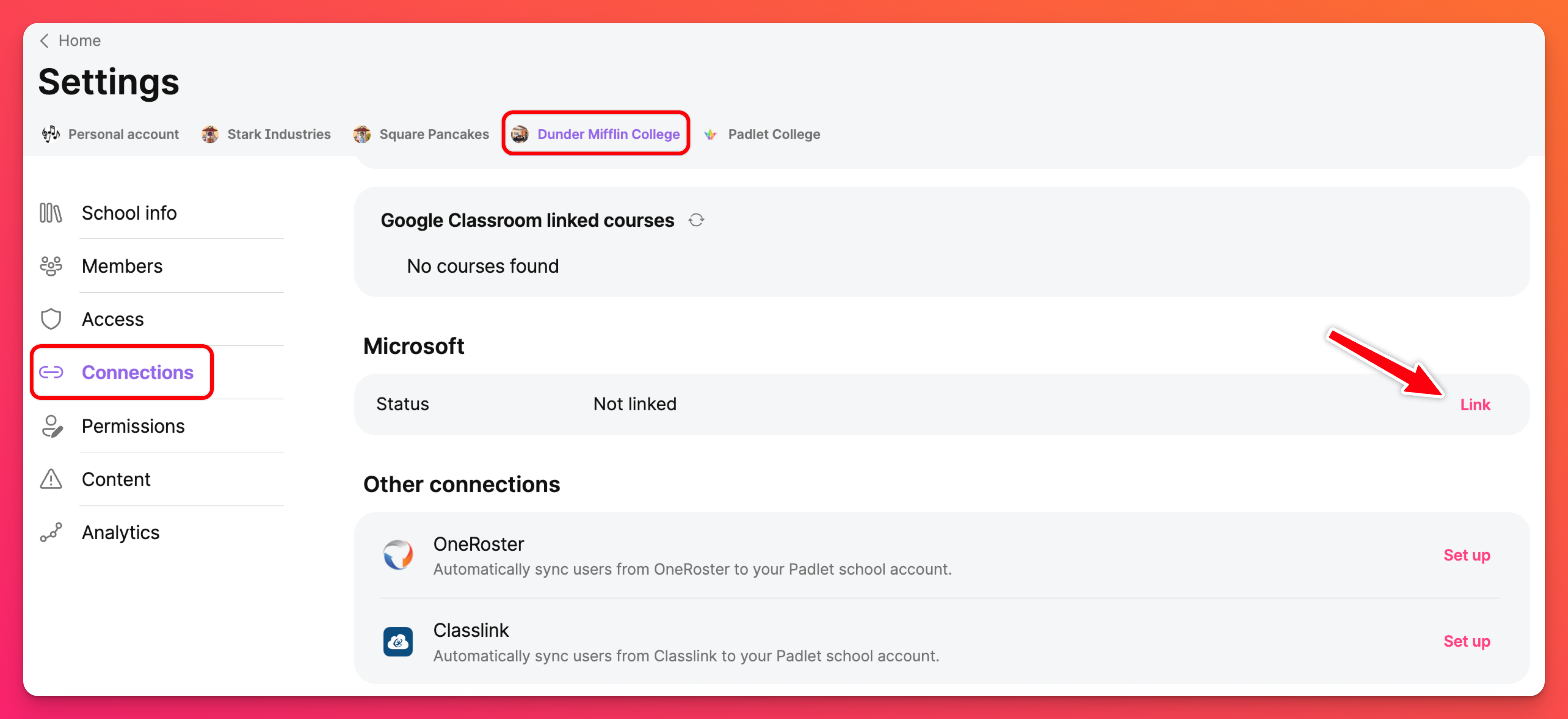 - Choose an account who's Microsoft Teams Tenant you want to link to your Padlet for Schools account