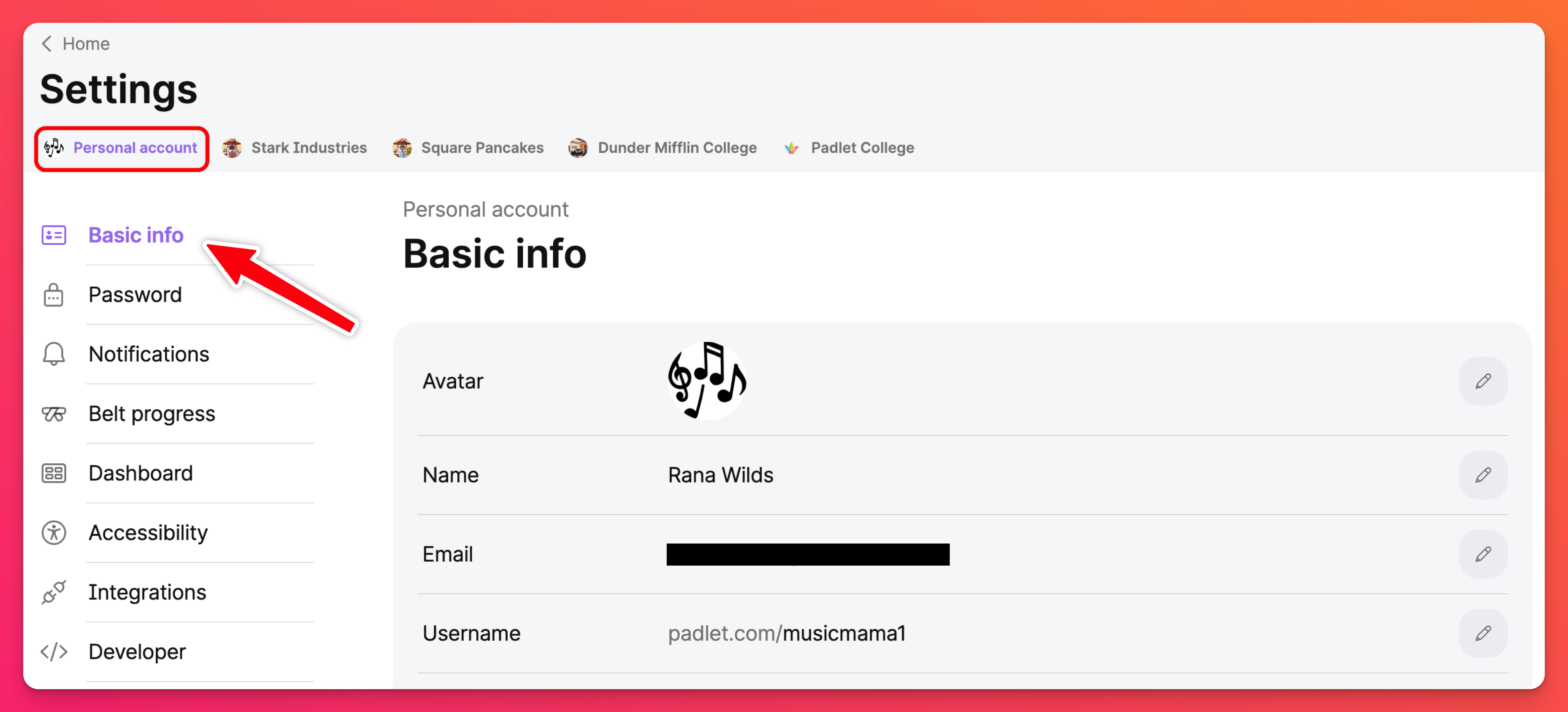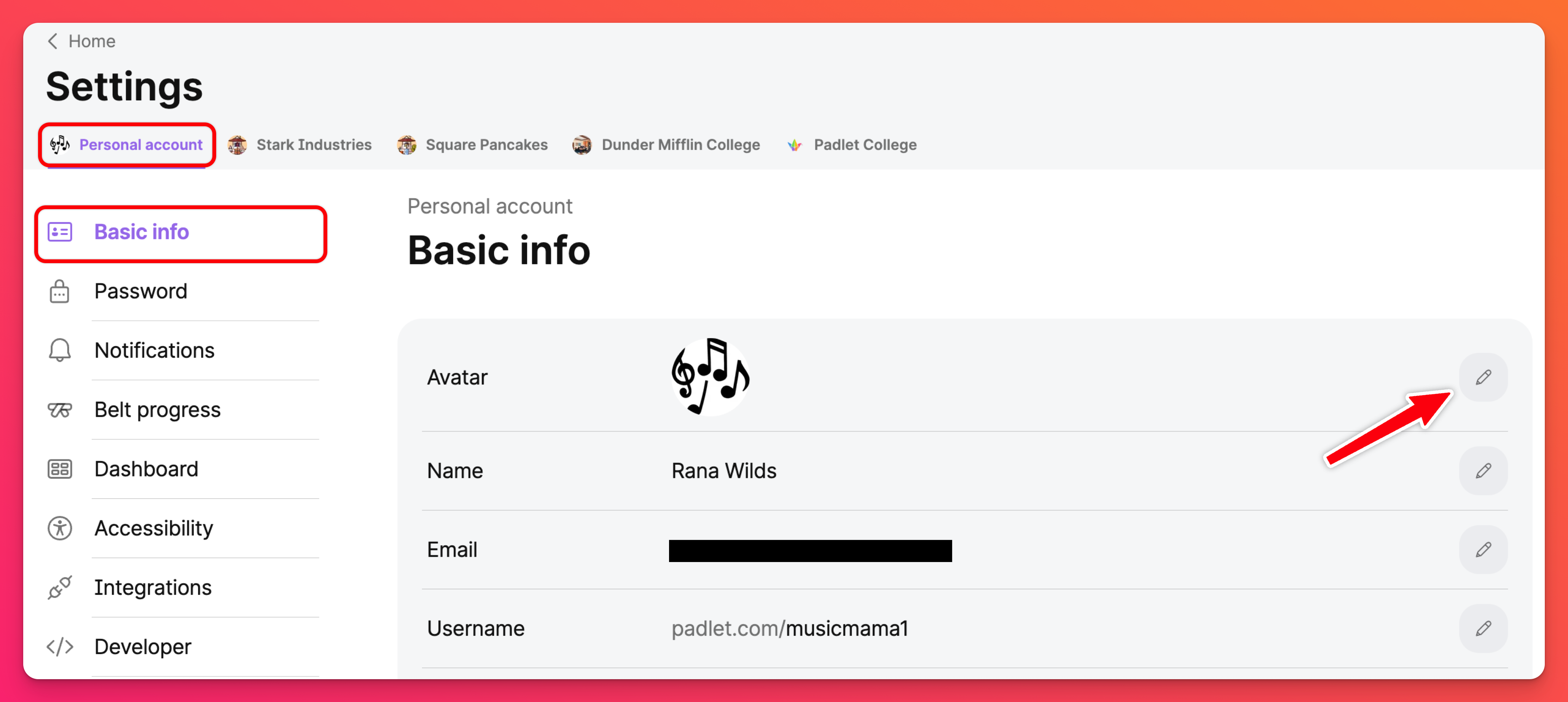 Updating the essentials of your account is easy! Need to change your avatar? Forgot your password (again)? We've done it, we get it, and we're here for you. Here are some simple steps, quick fixes and a few tips to help you personalize your Padlet profile like a pro.