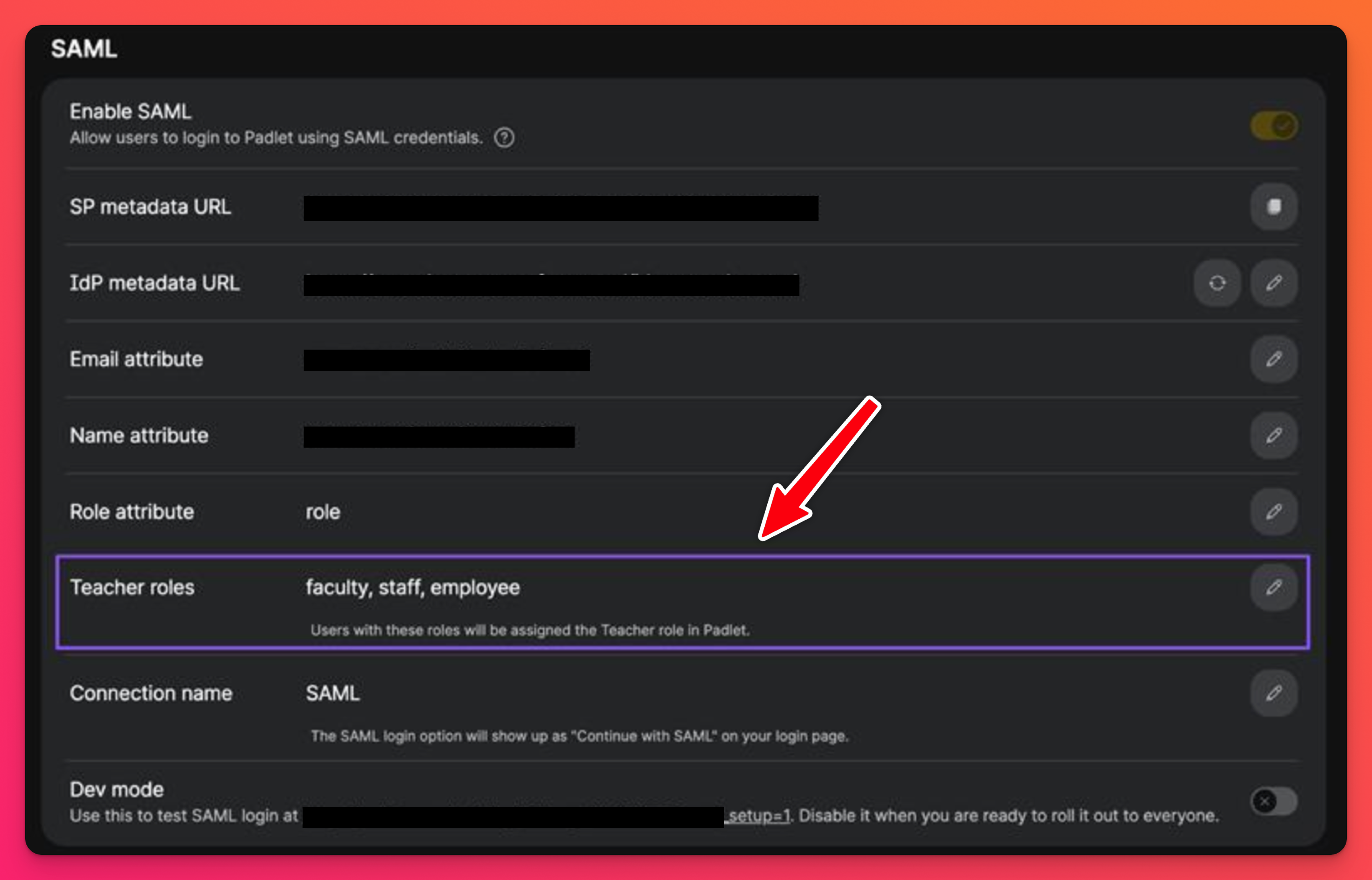 - Use a SAML account with faculty, staff or employee role attributes to sign into an existing Padlet student account to check if the account's role will be automatically upgraded from Student to Teacher.