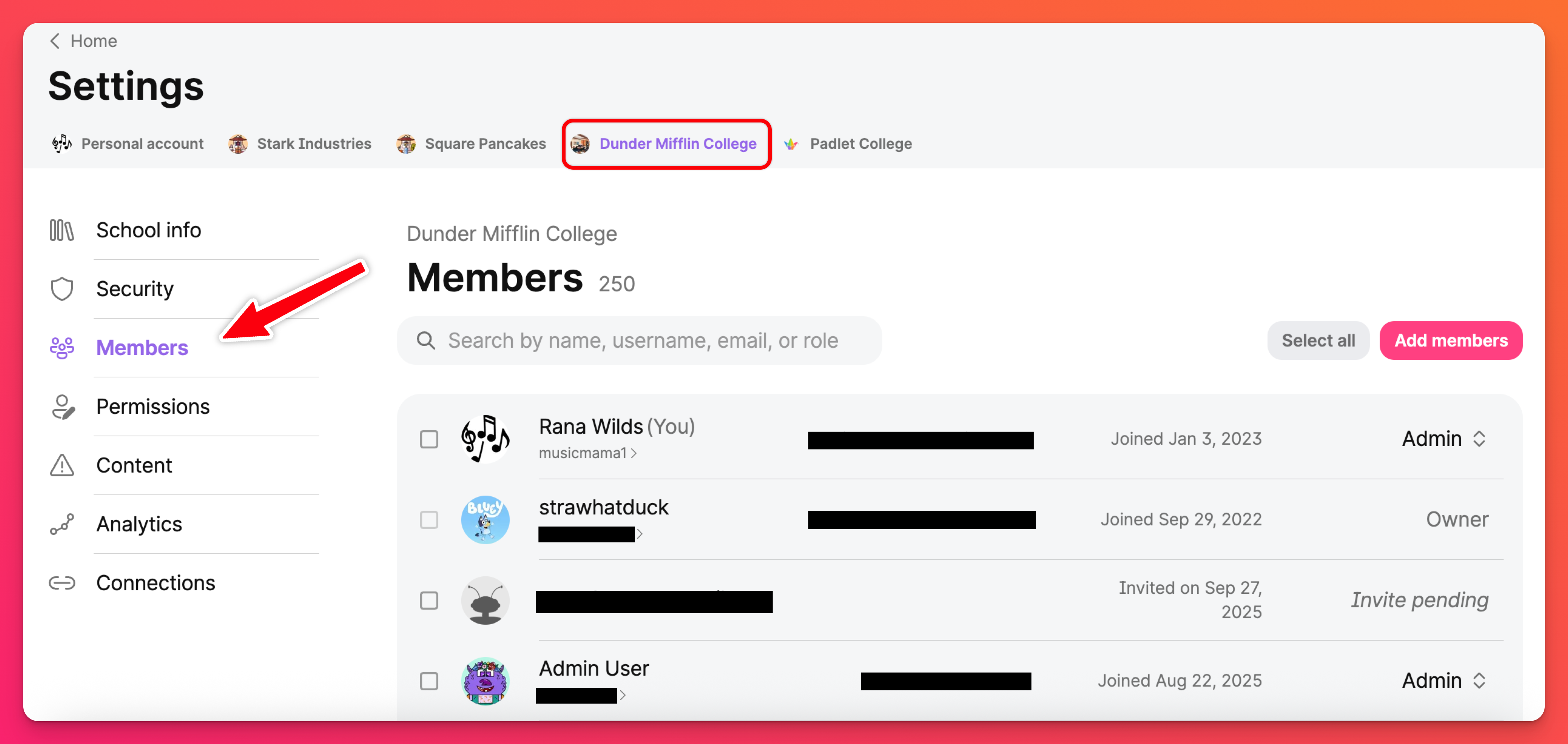 - Cliquez sur le bouton Inviter sur le côté droit de la page Membres.