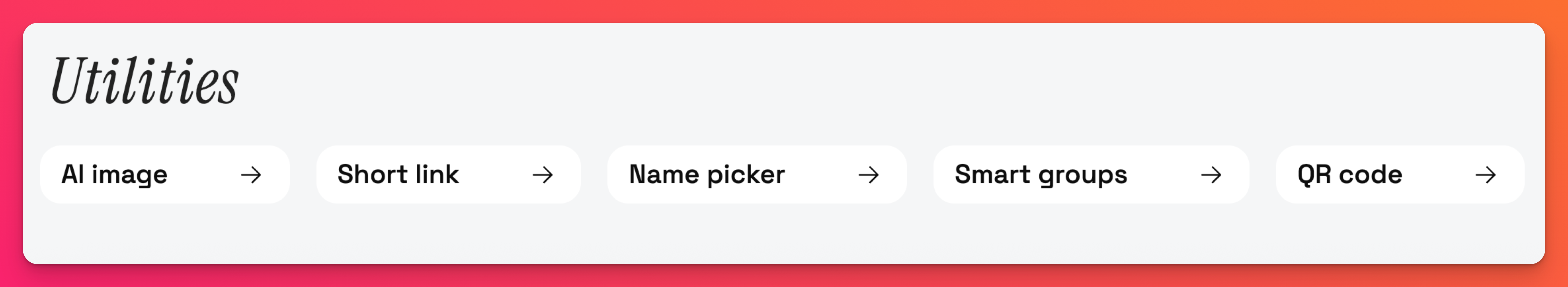 Les utilitaires sont destinés à une utilisation rapide et répétitive. La section Utilitaires se trouve au bas de la page de l'AT de Padlet.