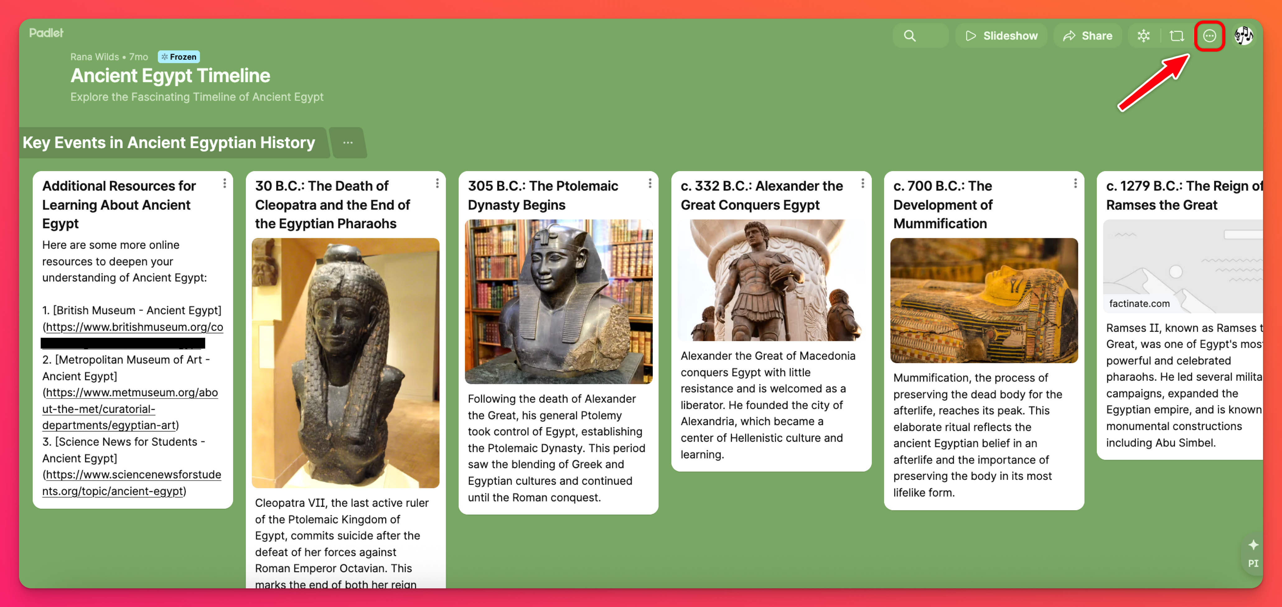 Cliquez sur le bouton Suivre pour être informé des nouvelles activités sur le tableau. Lorsque vous suivez un tableau, vous pouvez recevoir des notifications lorsque des publications sont ajoutées au padlet. Vous pouvez gérer ces notifications depuis votre page de notifications.