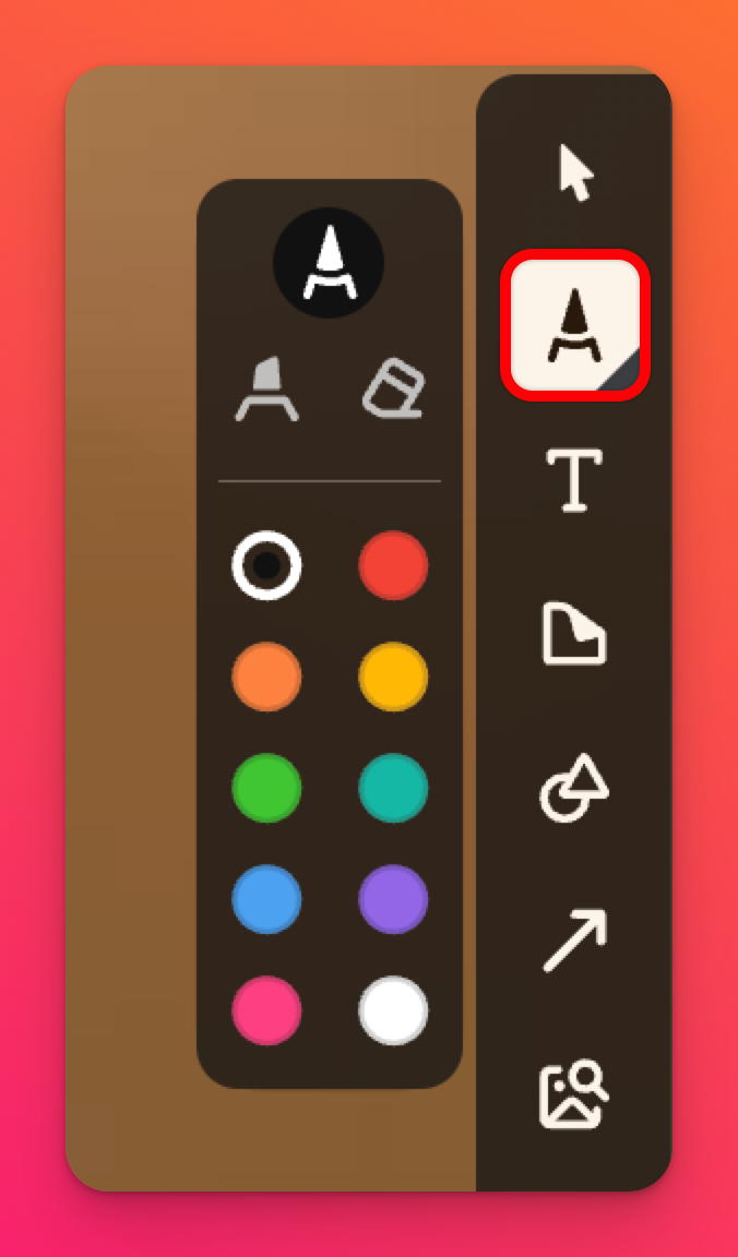 Pour ajouter un dessin à Padlet Sandbox, ouvrez le bac à sable et cliquez sur l'outil Dessiner. Choisissez entre les pointes stylo et surligneur et votre couleur préférée. Maintenant, van Gogh, montrez-nous vos talents !