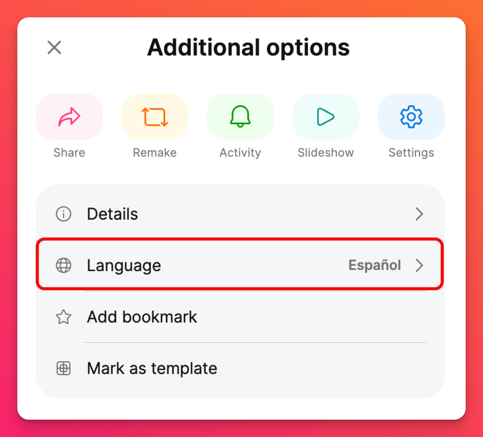 Exemple: Pour voir la version espagnole d'un padlet, ajoutez ?lang=es à la fin de l'URL.