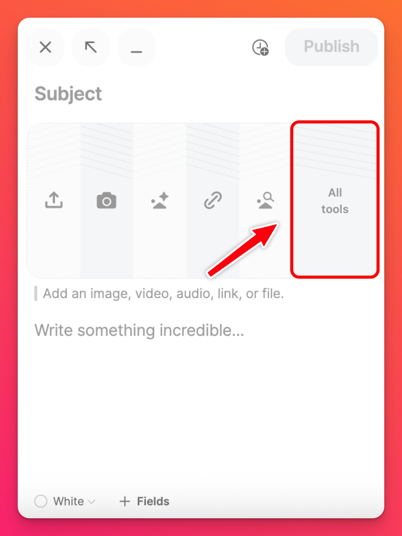 - Виберіть кнопку «Усі інструменти» в меню публікацій, щоб відкрити додаткові опції.